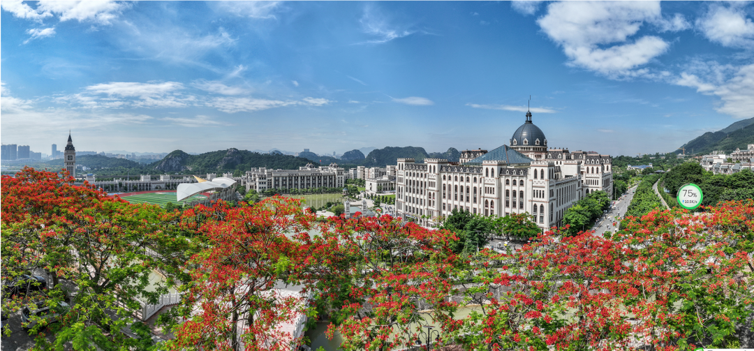 学校位于国家著名5A景区七星岩旅游景区内,校园建筑典雅、环境生态、景色旖旎。教学设施先进齐备,生活配套完善便利。独有的欧陆风格校园建筑,被称为“艾利斯顿商学院”,唯美的城堡大学!