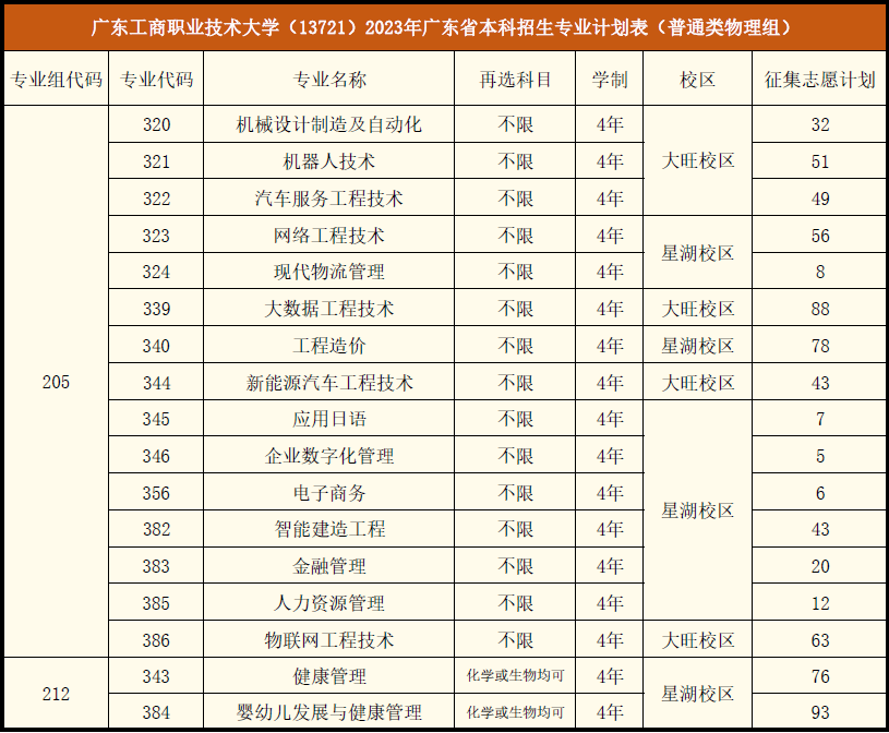 物理类征集志愿计划表