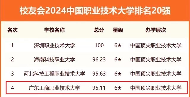 ★中国校友会2024年中国职业技术大学排名位列第4名