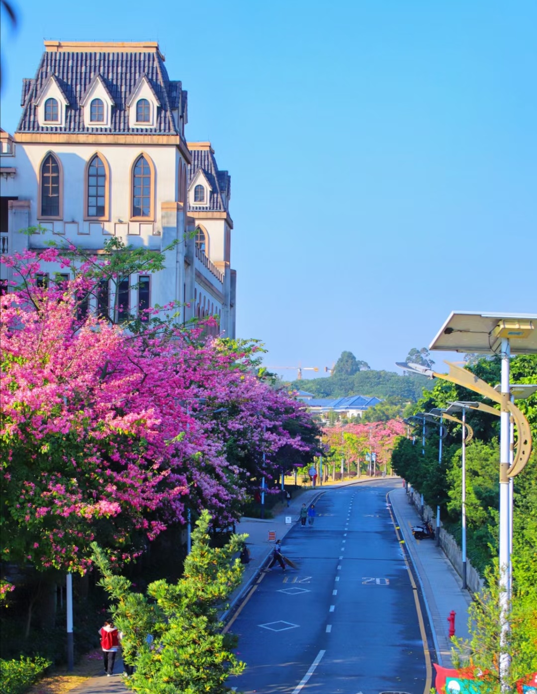 “风景这边独好”校园环境优美典雅,风光秀丽,中西合璧的建筑群,鳞次栉比,恢宏大气,绿波荡漾的明湖,映照着5万多平方米的中国最美图书馆,国际标准的体育馆、网球馆独具特色;美食街、瑞幸咖啡、健身房、书吧、肯德基应有尽有,宿舍、教室空调、wif全覆盖;乘车8-10分钟直达市区中心敏捷广场、大润发、益华广场、万达广场等商圈,广佛肇三地庆轻轨1小时接驳。