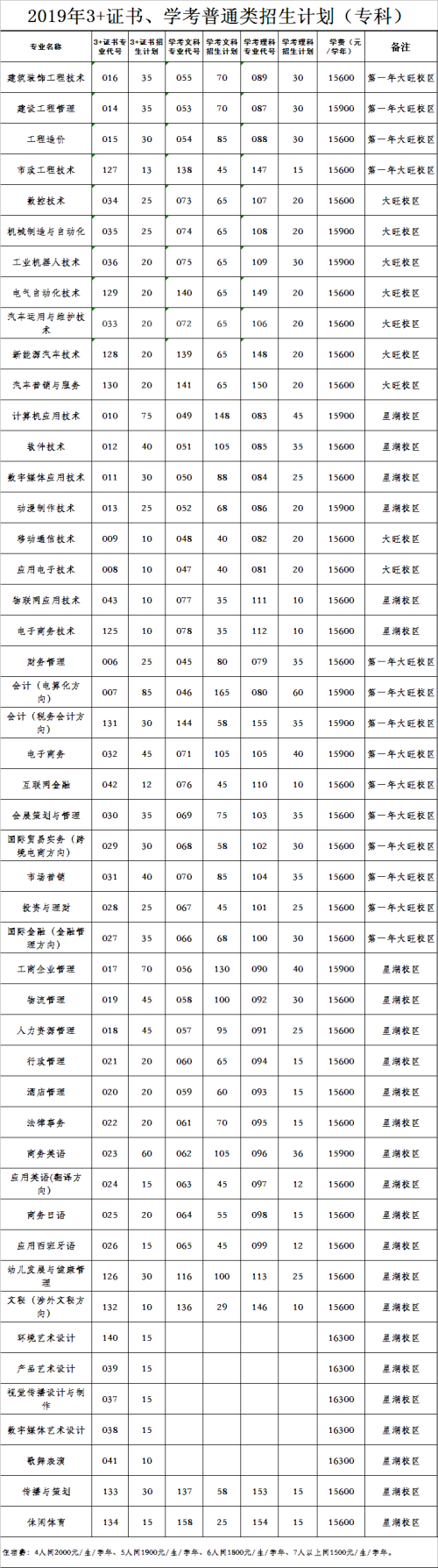 2019年3+证书、学考普通类招生计划(专科)