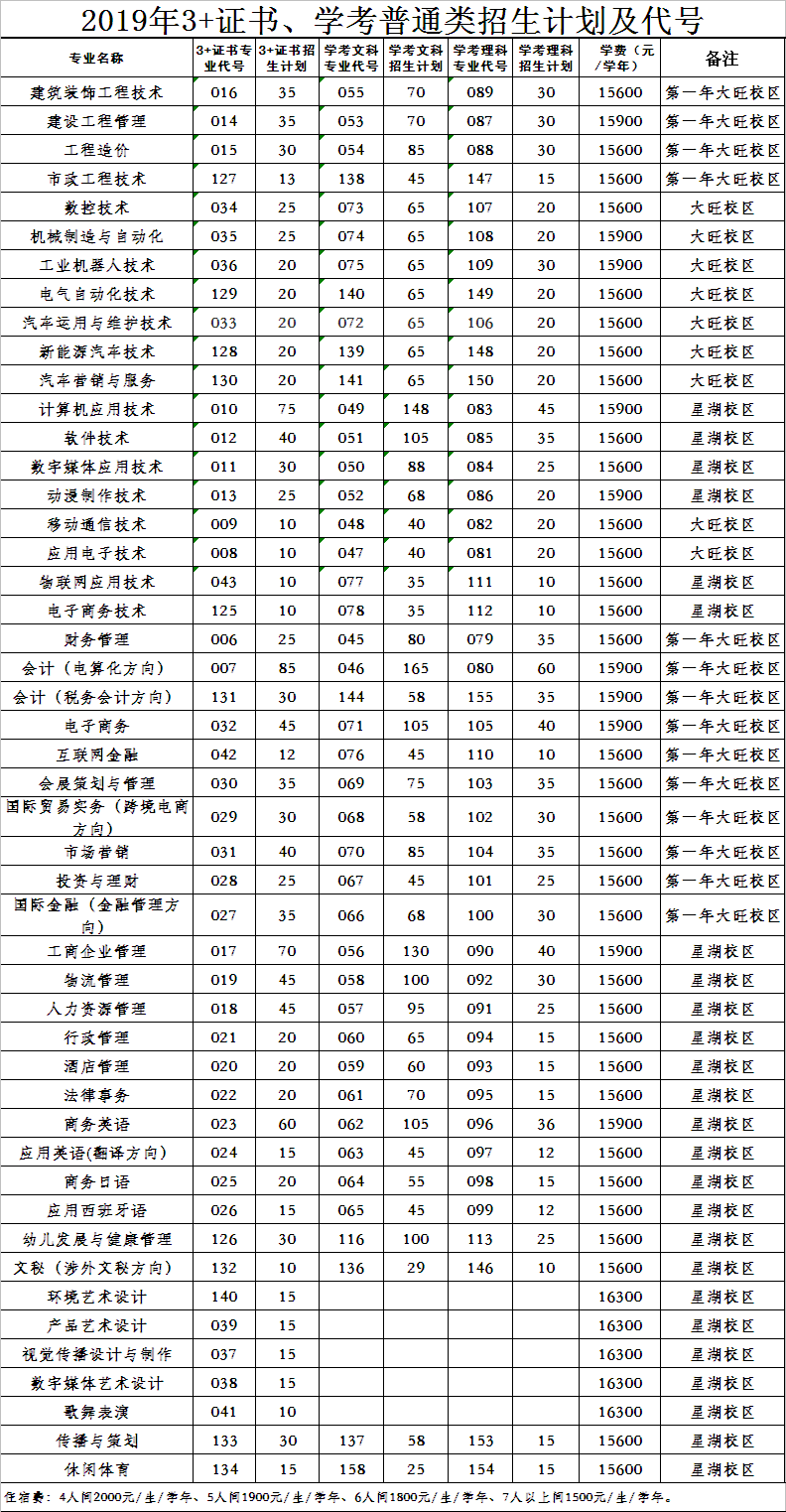 2019年3+证书、学考招生计划及代号