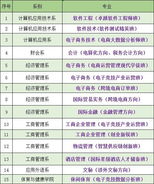 新增的10个本科专业分别是:机械设计制造及其自动化,工业机器人技术,汽车服务工程,网络工程 , 软件工程(卓越软件工程师班), 数字媒体技术,工程造价,物流管理,电子商务,商务英语 。
