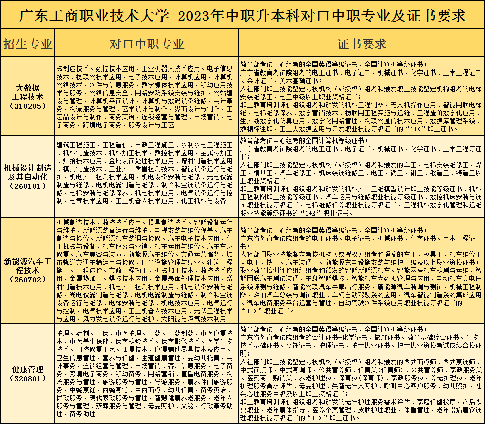 符合2023年广东省普通高考报名条件的中等职业学校(含职业高中、中专、成人中专、技工学校、技师学院)并取得相应专业技能课程证书(含专业技能课程证书、职业资格证书、职业技能等级证书、“1+X证书制度试点”职业技能等级证书)的应往届毕业生。普通高中应往届毕业生不得报考。